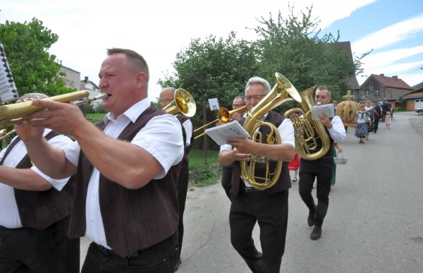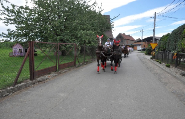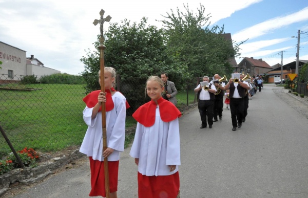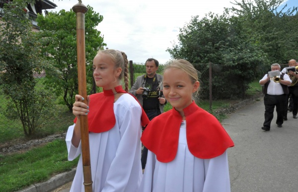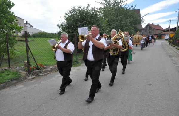 Tradycyjnie uczestnicy korowodu zebrali się przed remizą. Gości - dowiezionego bryczką proboszcza z Cyprzanowa oraz wójta Andrzeja Wawrzynka przywitał sołtys Bernard Franiczek. Starostami są Agnieszka i Stefan Mrasek. Główny powóz ciągnęły Dżina i Arnika ze stadniny Dariusza Franiczka, a za lejce trzymał Gerard Marcinek. Z orkiestrą na przedzie korowód przeszedł do pobliskiej kaplicy na Mszę św. dziękczynną. W Żerdzinach mieszka około 350 osób. Siedmiu gospodarzy żyje z roli. Kiedyś było ich znacznie więcej.