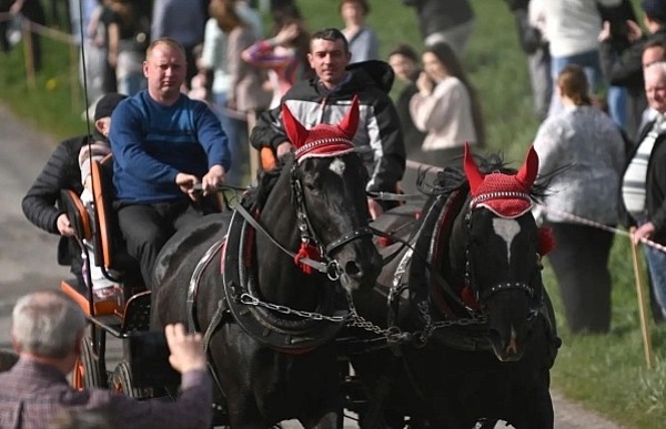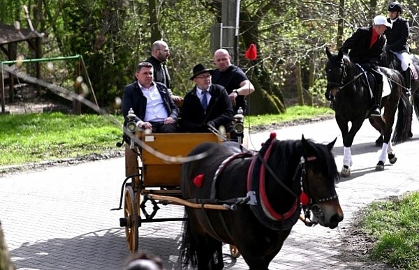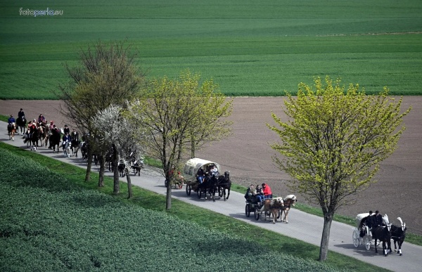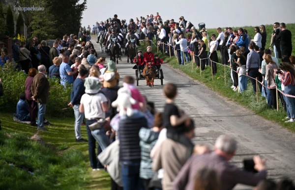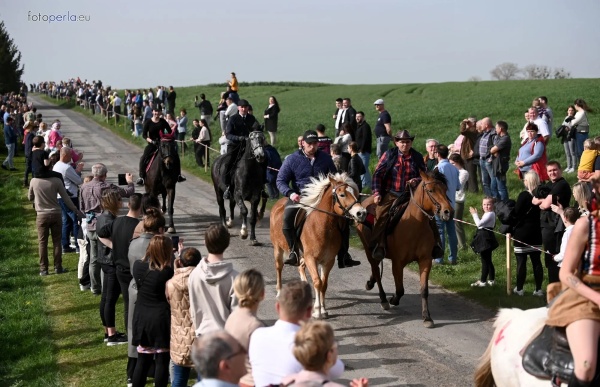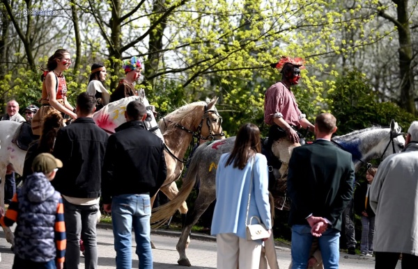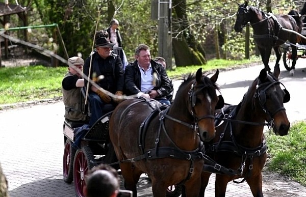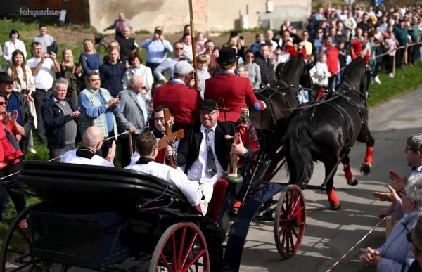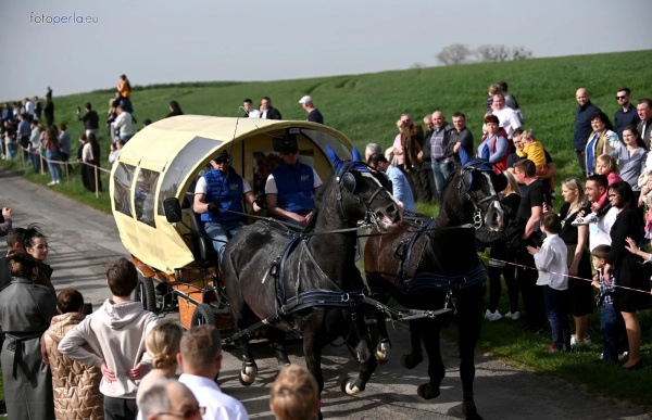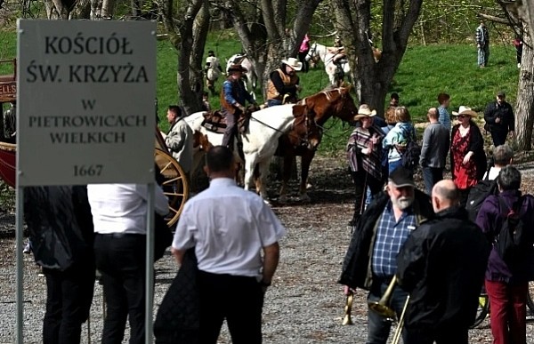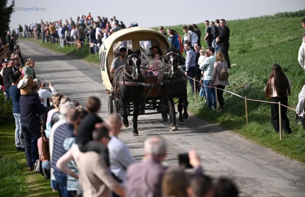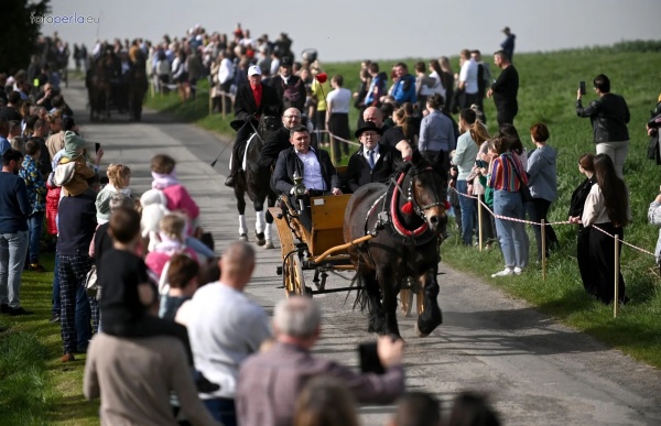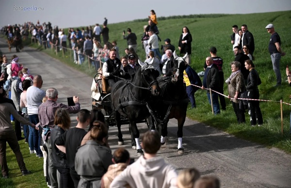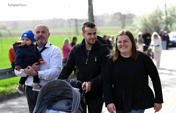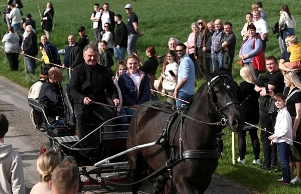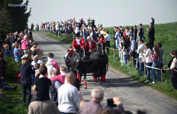 Dziś, 01.04., gościem procesji wielkanocnej był Adrian Galbas, arcybiskup metropolita katowicki, od 2023 r. także administrator apostolski sede vacante diecezji sosnowieckiej, pallotyn. Jego zgromadzenie posługuje w pobliskim Kietrzu. Przy pątniczym kościółku pw. św. Krzyża procesja zatrzymuje się na błagalne nabożeństwo. Po nim, daleką drogą przez pola, wraca do kościoła parafialnego. Na końcowym odcinku drogi polnej odbywa się wyścig konny młodzieńców o najlepszego konia i pierwsze miejsce. Nabożeństwo kończy się w kościele parafialnym błogosławieństwem sakramentalnym. FOTO https://www.facebook.com/mirekbasista