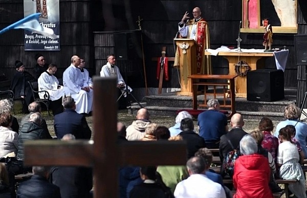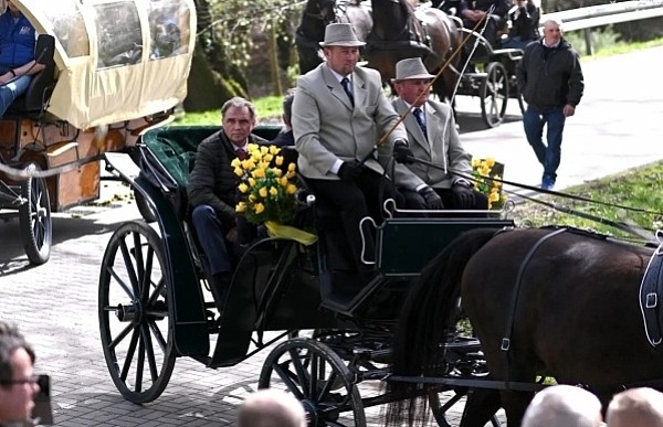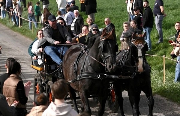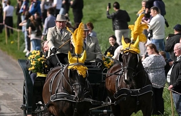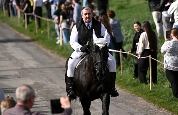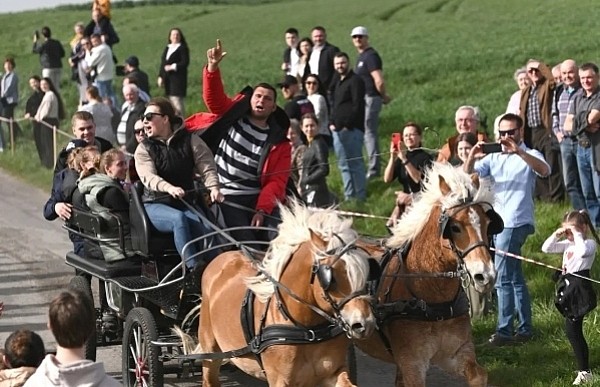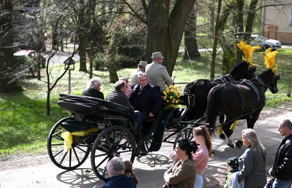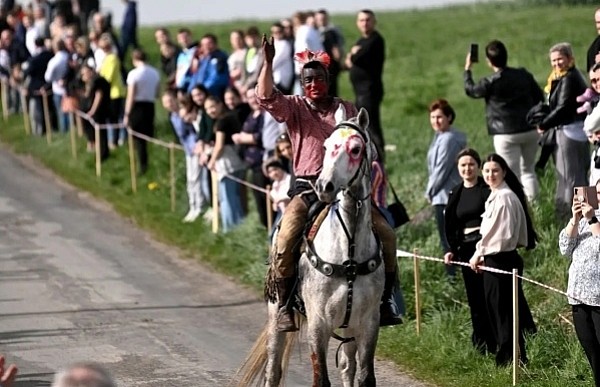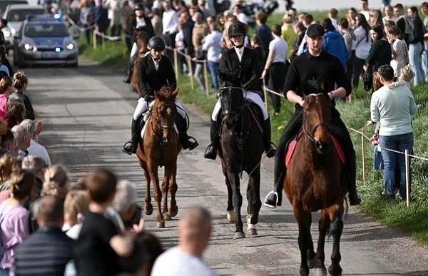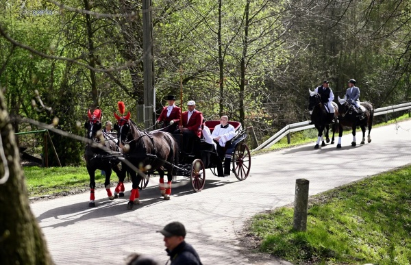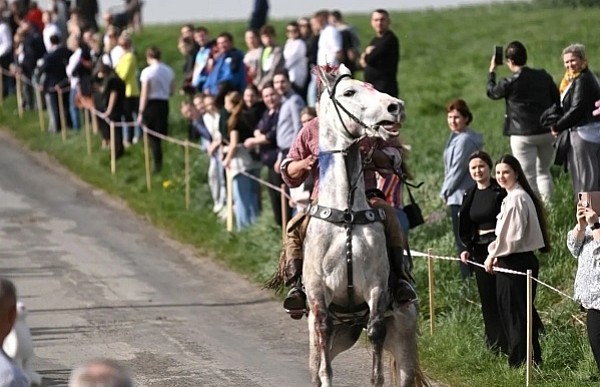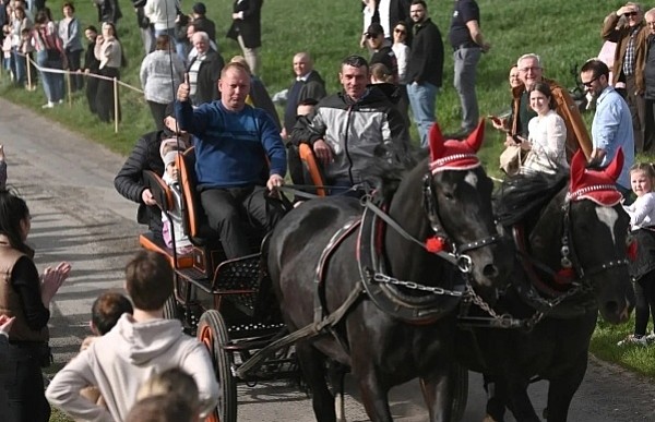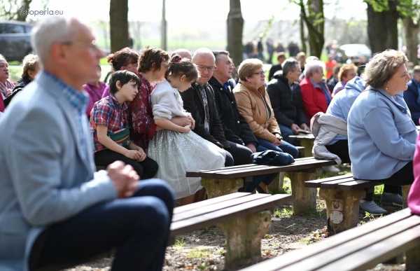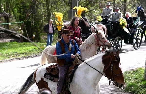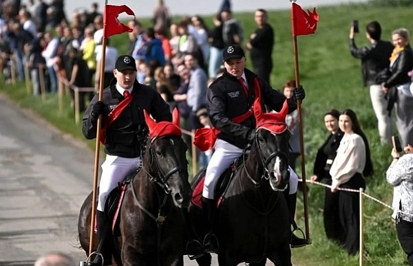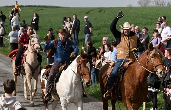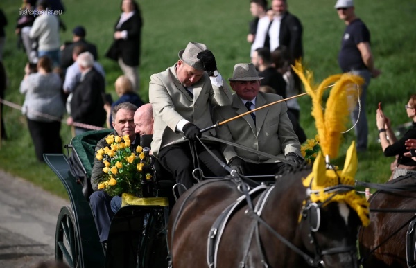 Dziś, 01.04., gościem procesji wielkanocnej był Adrian Galbas, arcybiskup metropolita katowicki, od 2023 r. także administrator apostolski sede vacante diecezji sosnowieckiej, pallotyn. Jego zgromadzenie posługuje w pobliskim Kietrzu. Przy pątniczym kościółku pw. św. Krzyża procesja zatrzymuje się na błagalne nabożeństwo. Po nim, daleką drogą przez pola, wraca do kościoła parafialnego. Na końcowym odcinku drogi polnej odbywa się wyścig konny młodzieńców o najlepszego konia i pierwsze miejsce. Nabożeństwo kończy się w kościele parafialnym błogosławieństwem sakramentalnym. FOTO https://www.facebook.com/mirekbasista