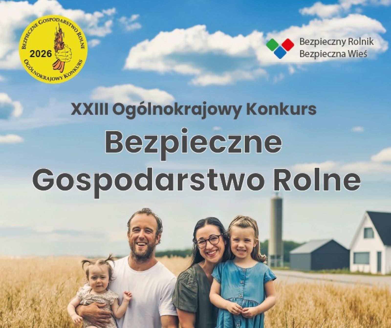 Kasa Rolniczego Ubezpieczenia Społecznego zaprasza właścicieli gospodarstw rolnych, małych jak i dużych, do wzięcia udziału w XXIII Edycji Ogólnokrajowego Konkursu „Bezpieczne Gospodarstwo Rolne”. Patronat honorowy nad Konkursem objął Prezydent RP Karol Nawrocki.